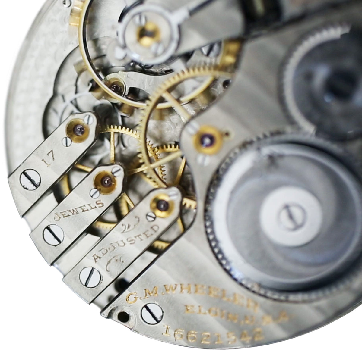 The movement of a watch is the mechanism that powers the hands and regulates time. The American Artisan Series is built using antique, American-made pocket watch movements. Each vintage movement is meticulously restored and tested before use in a casing system. Vortic has a variety of sources for antique pieces, but movements are primarily sourced from individuals who buy jewelry store and watchmaker estates. The owners of these estates almost always made a portion of their money from scrapping pocket watch cases for their precious metal value, but this left the beautifully decorated movement exposed and without a home. Vortic has dedicated itself to rescuing these movements and making them relevant again.