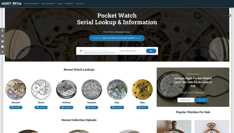 The Pocket Watch Database is an excellent resource for getting information on antique American pocket watch movements. In addition to manufactured year, it provides a wealth of knowledge on the origin of movements, production numbers, and images.