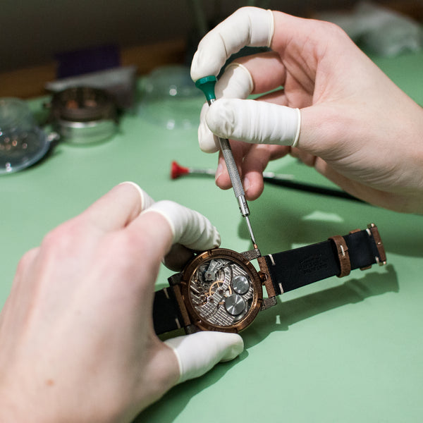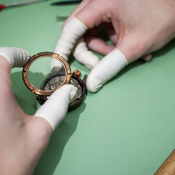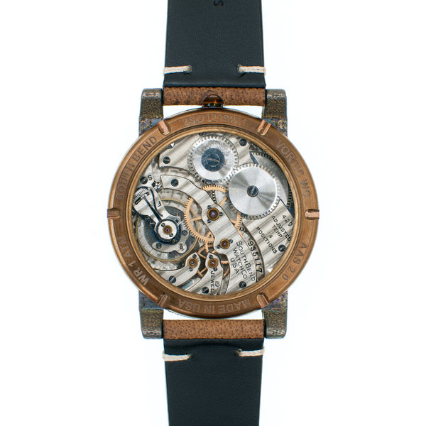Disclaimer: Harley-Davidson is a registered trademark of Harley-Davidson Inc, and Vortic Watch Company is not affiliated with Harley-Davidson in any manner. This watch was built from historic, antique components, and Vortic does not manufacture any watches featuring the Harley-Davidson brand.