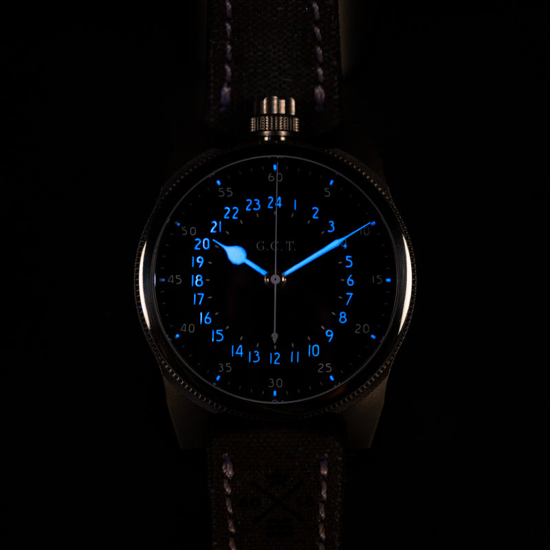 A few years ago a gentleman brought us a pocket watch. It was a family heirloom and he wanted us to turn it into a wristwatch, as we've done for so many others. This pocket watch was different though. We don't see many with black dials, and we'd never seen one with a 24-hour dial.