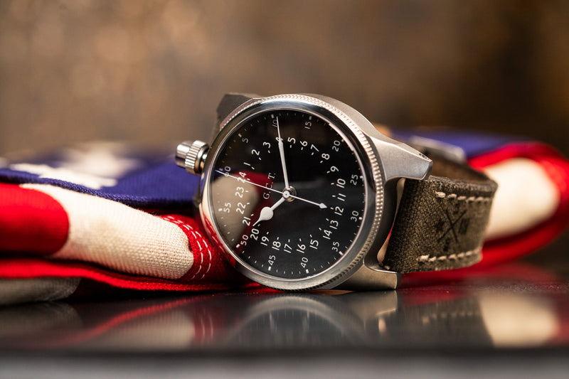 A watch this special can't have any normal wrist-band, and it shouldn't come with just one. That's why we partnered with Greg Stevens Design in Salt Lake City. Greg typically makes just one strap at a time for individual consumers, but we were able to convince him to collaborate with us on this project and craft two custom straps to accompany every Military Edition watch.