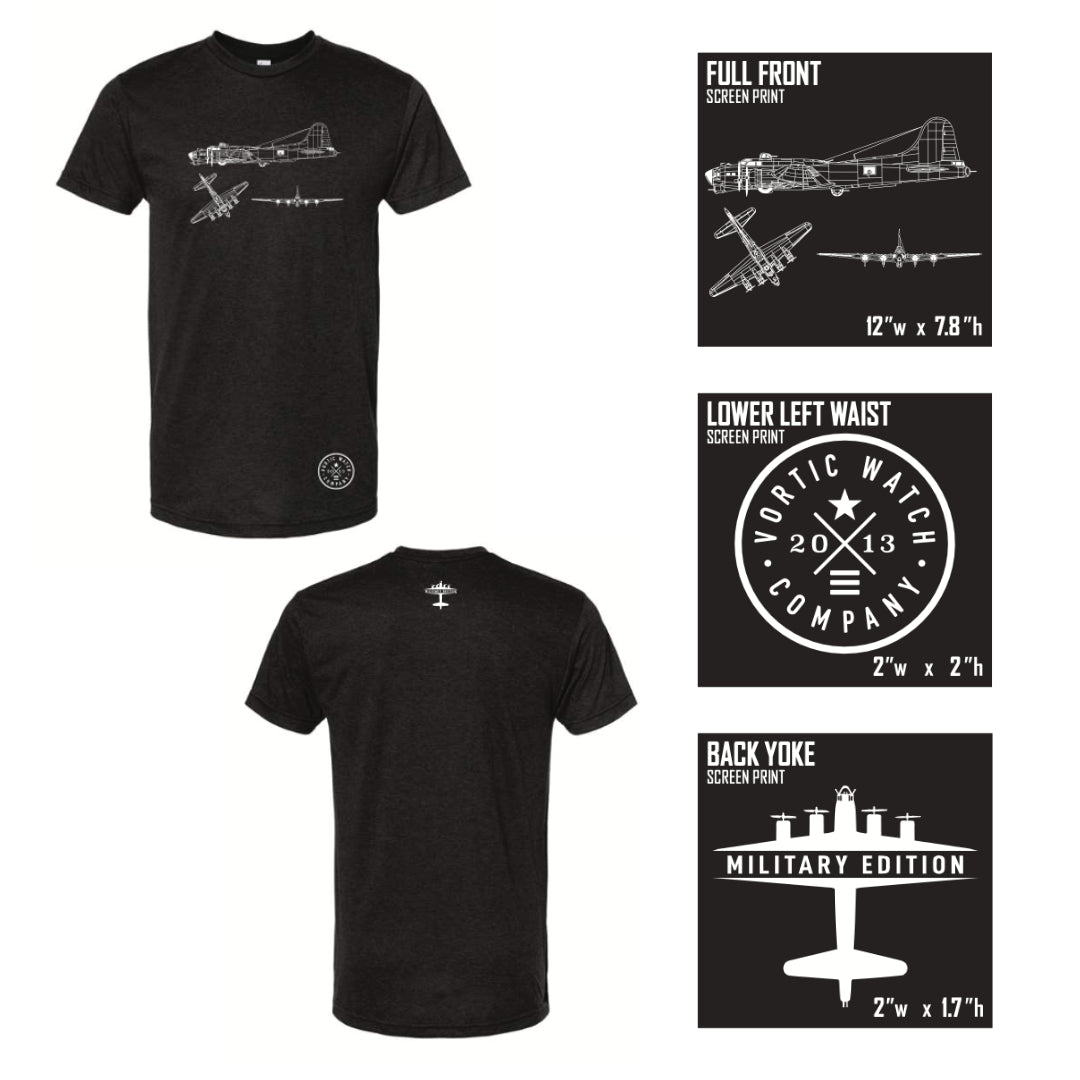 Celebrate the Military Edition watch, and the history behind the B-17 Bomber, with this awesome black t-shirt!