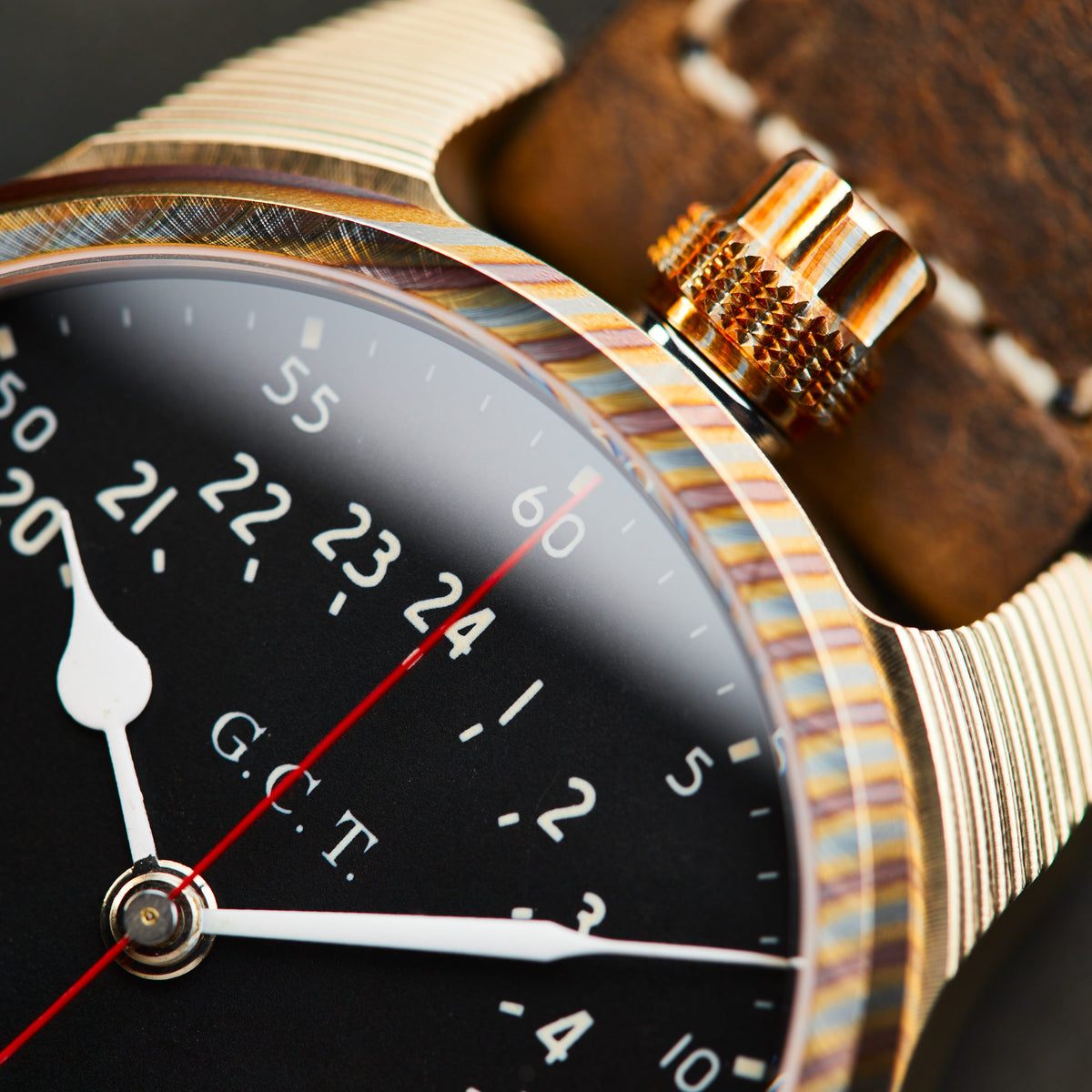 - Case Material: Machined Bronze with Mokume Bezel and Crown